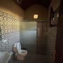Modern tiled bathroom with shower, WC, and washbasin