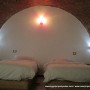 Second Bedroom: Two single beds and a wall fan