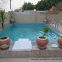 Shared swimming pool with loungers and shaded area