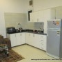 Fully equipped kitchen with cooker, fridge, microwave & dining space