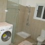 Modern bathroom with overhead shower, WC, and mirror